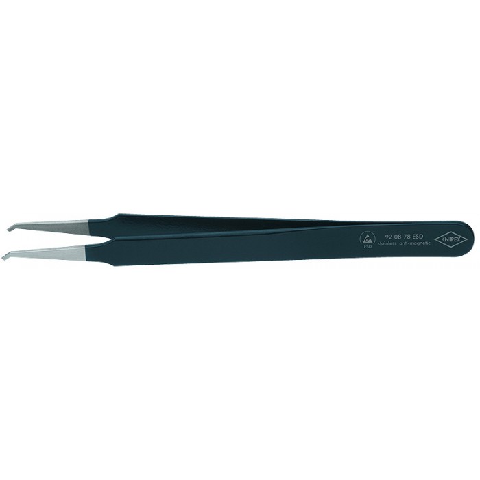 Пинцет прецизионный позиционный SMD ESD для микроэлектроники, нерж, 120 мм, гладкие губки 45° (KN-920878ESD)