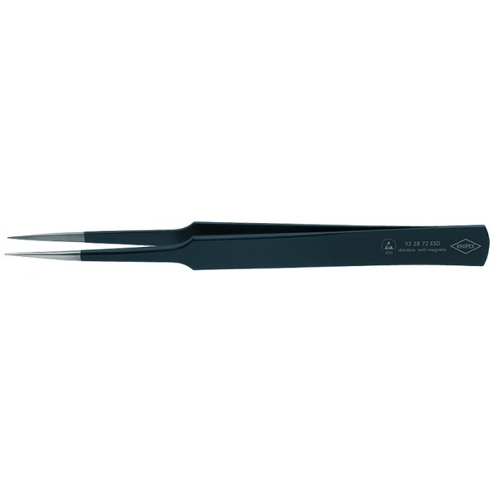 Пинцет универсальный ESD, нерж, 130 мм, гладкие прямые заострённые губки (KN-922872ESD)
