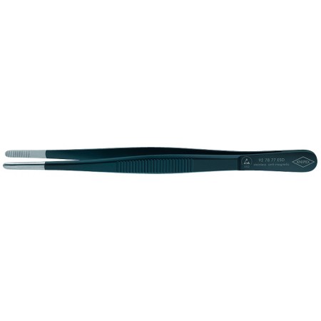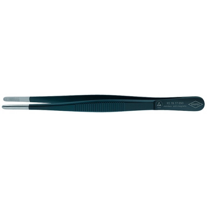 Пинцет универсальный ESD, нерж, 145 мм, зазубренные прямые тупые губки (KN-927877ESD)