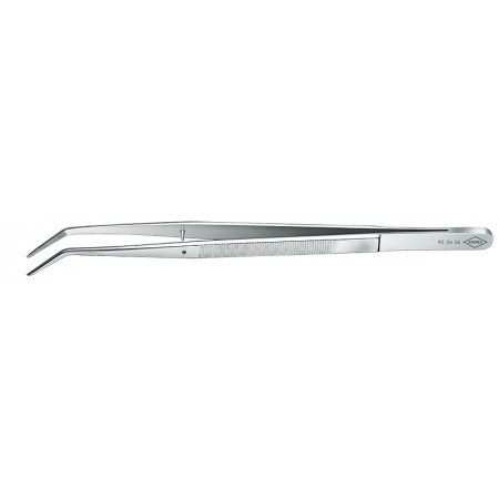 Пинцет захватный прецизионный со штифтом, тонкие зазубренные губки 45°,155 мм, пружинная сталь, хром (KN-923436)