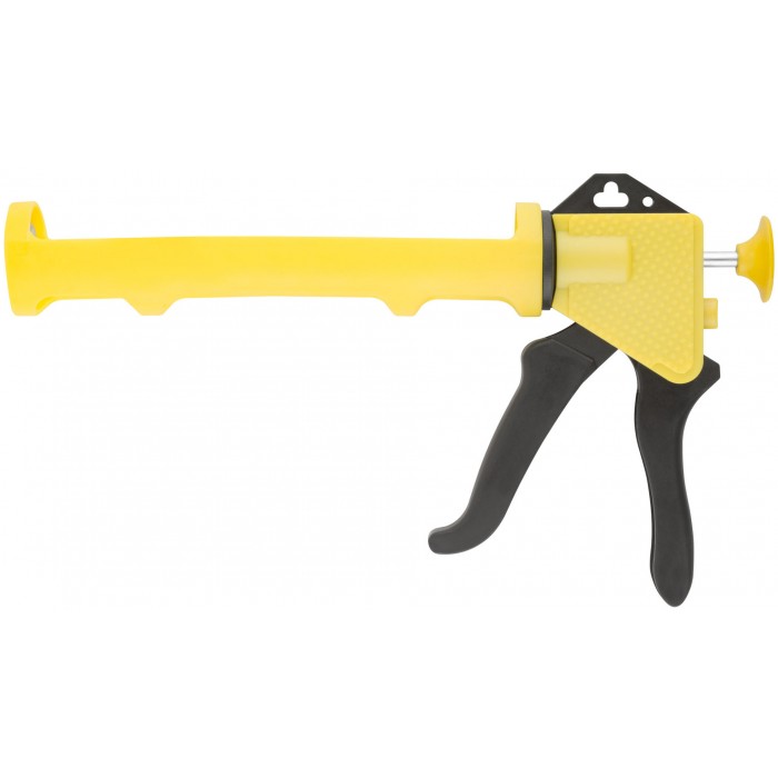 Профи. Полукорпусной. Для выдавливания герметика из стандартной емкости 310 мл. Легкий поворотный пластиковый корпус удобен при длительной работе. Материал: пластиковый корпус, шток из инструментальной стали.