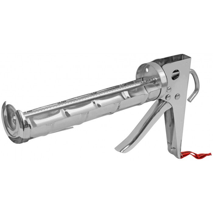 Полукорпусной, усиленный, хромированный с зубчатым штоком и ремешком для переноски. Повышенная износоустойчивость. Для выдавливания герметика из стандартной емкости 310 мл. Материал: хромированная инструментальная сталь.