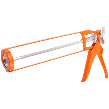 Скелетный. Для выдавливания герметика из стандартной емкости 310 мл. Материал: инструментальная сталь, алюминий.