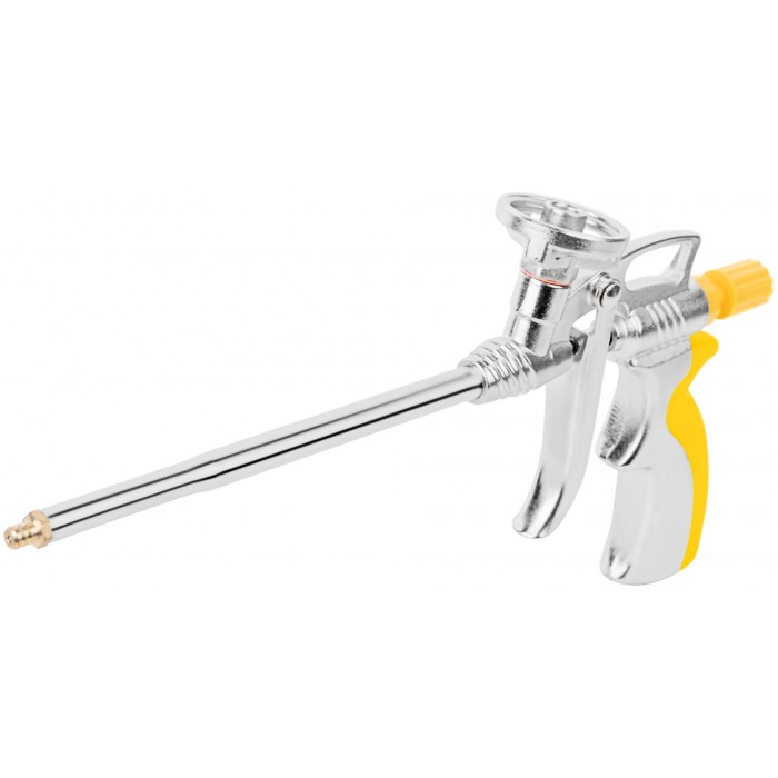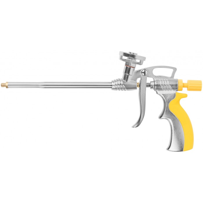 Пистолет для монтажной пены, алюминиевый корпус, прорезиненная ручка (14283)