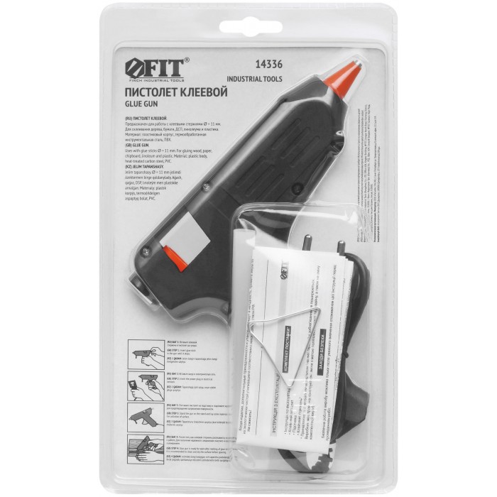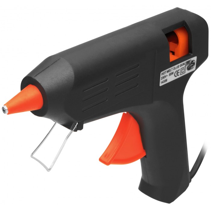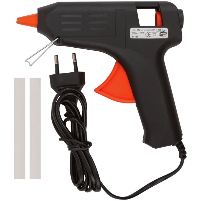 220 В. Для склеивания дерева, бумаги, ДСП, линолеума и пластика. Используется с клеевым стержнем. Противокапельная система. Материал: пластиковый корпус, инструментальная сталь, ПВХ. Упаковка: блистер.