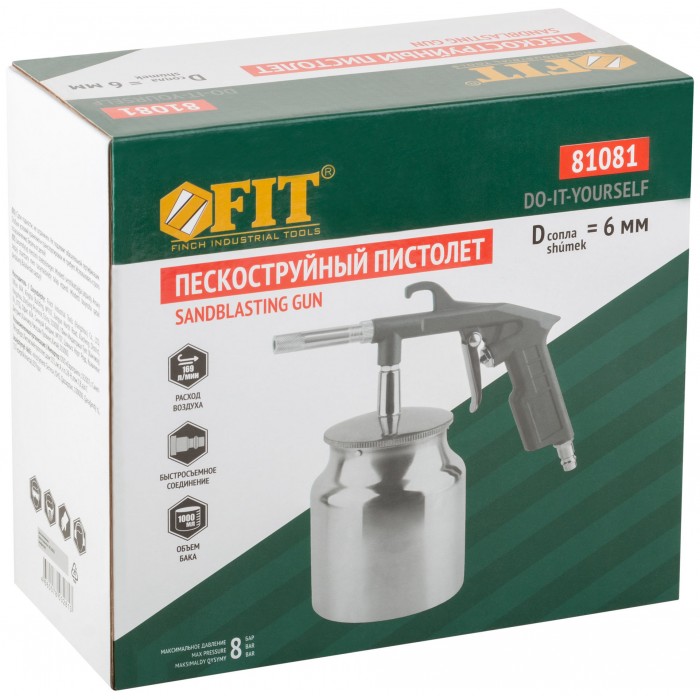 Для пневмокомпрессора. Соединение быстросъемное. Объем бака 1000 мл. Расход воздуха 169Kл / мин. Максимальное давление 8 бар, рабочее давление 3,5-5 бар. Для удаления старой краски и ржавчины с деталей и поверхностей. Материал: алюминиевый нижний бачок, корпус из алюминия с порошковым покрытием. Упаковка: картонная коробка.