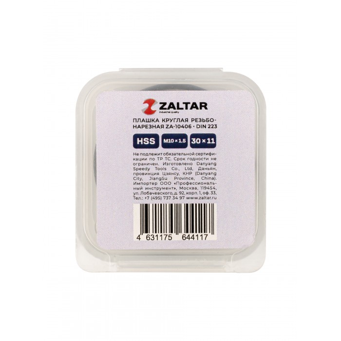 Плашка круглая резьбонарезная HSS, DIN 223 B (DIN EN 22568), M10 x 1.5, 30 x 11 (ZA-10406)