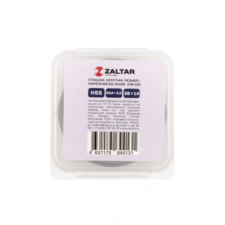 Плашка круглая резьбонарезная HSS, DIN 223 B (DIN EN 22568), M14 x 2.0, 38 x 14 (ZA-10408)