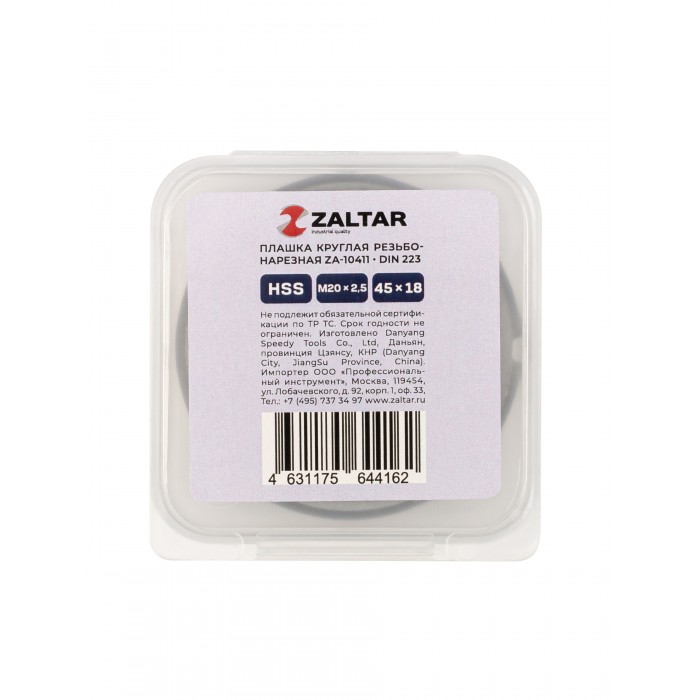 Плашка круглая резьбонарезная HSS, DIN 223 B (DIN EN 22568), M20 x 2.5, 45 x 18 (ZA-10411)