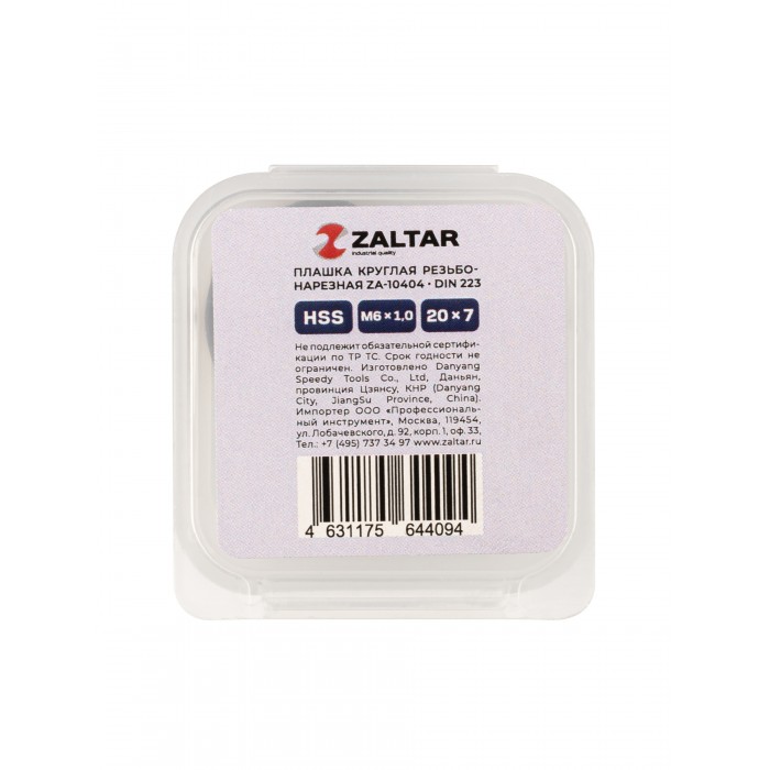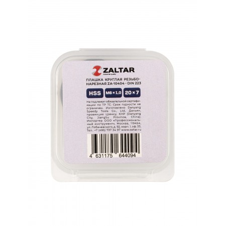Плашка круглая резьбонарезная HSS, DIN 223 B (DIN EN 22568), M6 x 1.0, 20 x 7 (ZA-10404)