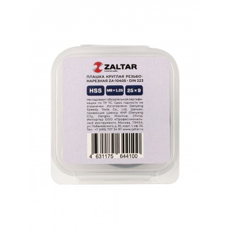 Плашка круглая резьбонарезная HSS, DIN 223 B (DIN EN 22568), M8 x 1.25, 25 x 9 (ZA-10405)