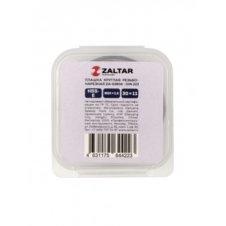 Плашка круглая резьбонарезная HSS-E, DIN 223 B (DIN EN 22568), M10 x 1.5, 30 x 11 (ZA-03806)