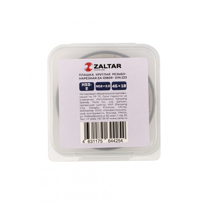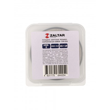 Плашка круглая резьбонарезная HSS-E, DIN 223 B (DIN EN 22568), M16 x 2.0, 45 x 18 (ZA-03809)