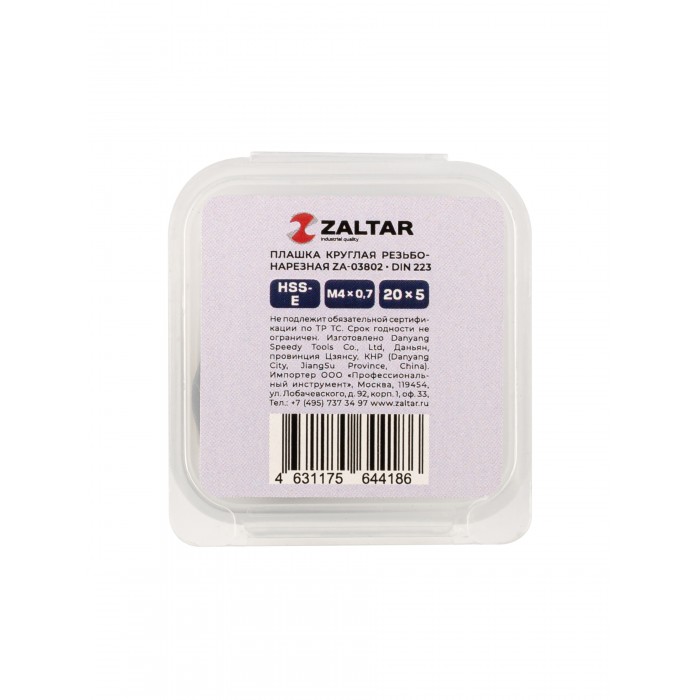 Плашка круглая резьбонарезная HSS-E, DIN 223 B (DIN EN 22568), M4 x 0.7, 20 x 5 (ZA-03802)