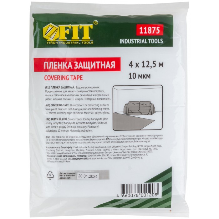 10 мкм. Для защиты поверхностей от краски, пыли и грязи при выполнении ремонтных и отделочных работ. Водонепроницаема. Упаковка: п/э пакет.
