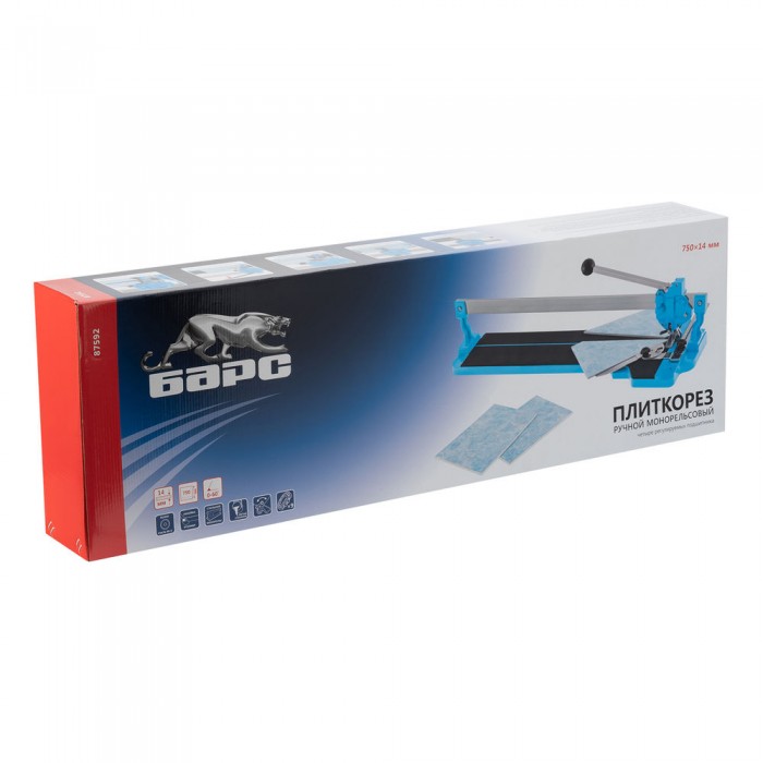 Плиткорез ручной монорельсовый 750 х 14 мм, ходовая каретка, 9/4 регулировка подшипников, литая станина Барс (87592)