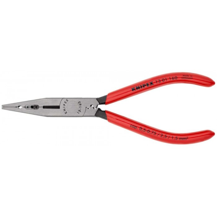 Плоскогубцы электрика для монтажа проводов, 160 мм, фосфатированные, обливные ручки (KN-1301160)