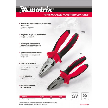 Плоскогубцы комбинированные, 160 мм, хром-ванадий, двухкомпонентные рукоятки Matrix (17090)