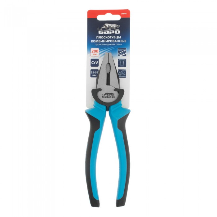 Плоскогубцы комбинированные 200 мм, хром-ванадий, двухкомпонентные рукоятки Барс
