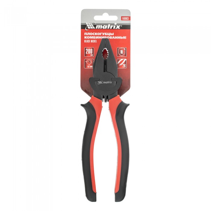 Плоскогубцы комбинированные Black Nickel, 200 мм, двухкомпонентные рукоятки Matrix