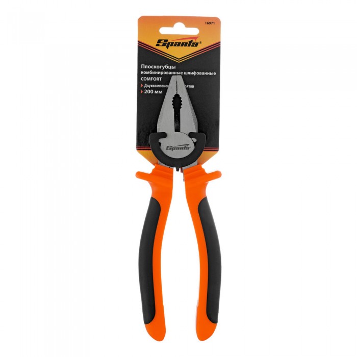 Плоскогубцы комбинированные Comfort, 200 мм, шлифованные, двухкомпонентные рукоятки Sparta