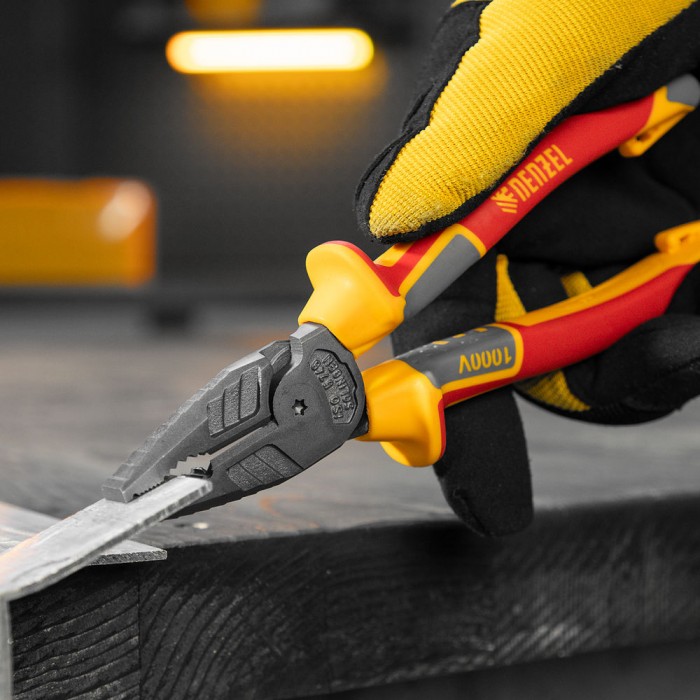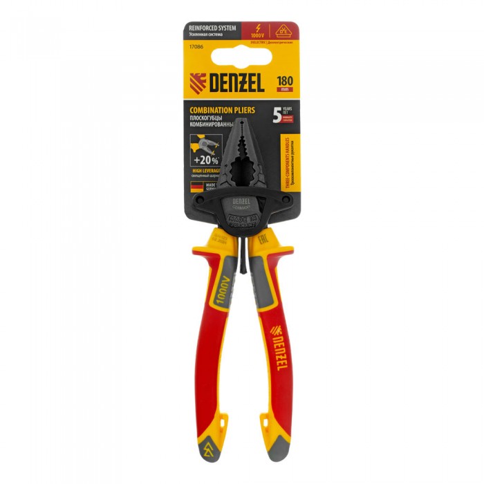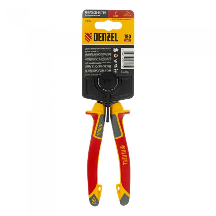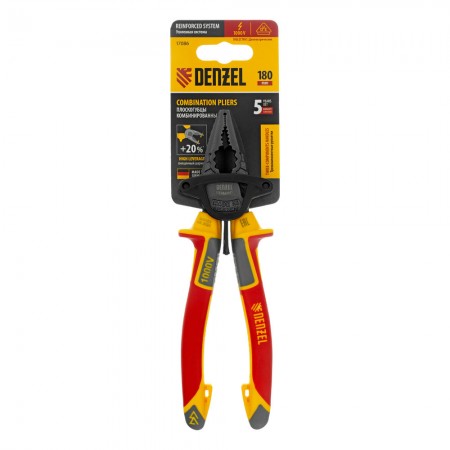 Плоскогубцы комбинированные, диэлектрические трехкомпонентные рукоятки до 1000 В, 180 мм Denzel (17086)