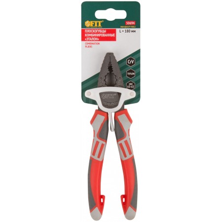 Плоскогубцы комбинированные "Эталон", CrV сталь, ребра жесткости на губках, тефлоновое покрытие, 3К прорезиненные ручки 180 мм (50694)