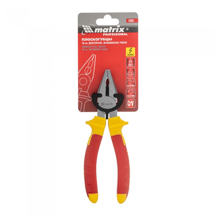 Плоскогубцы комбинированные, Insulated, 160 мм, двухкомпонентные рукоятки Matrix Professional