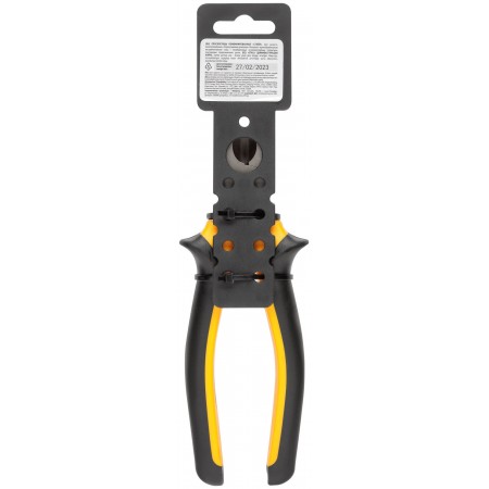 Плоскогубцы комбинированные. Материал: усиленная инструментальная сталь, молибденовое антикоррозийное покрытие, мягкие прорезиненные ручки. Упаковка: пластиковый подвес.
