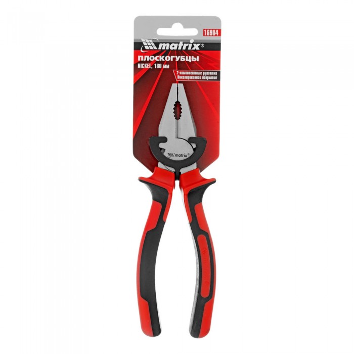 Плоскогубцы Nickel, 180 мм, никелированные, двухкомпонентные рукоятки Matrix