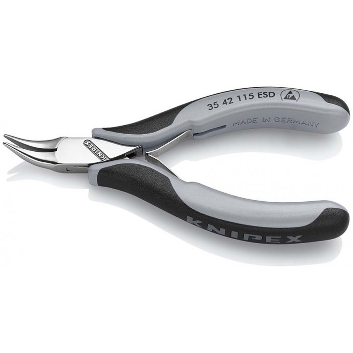 Плоскогубцы захватные для электроники ESD, круглые губки 45°, 115 мм, 2-комп антистатические ручки (KN-3542115ESD)