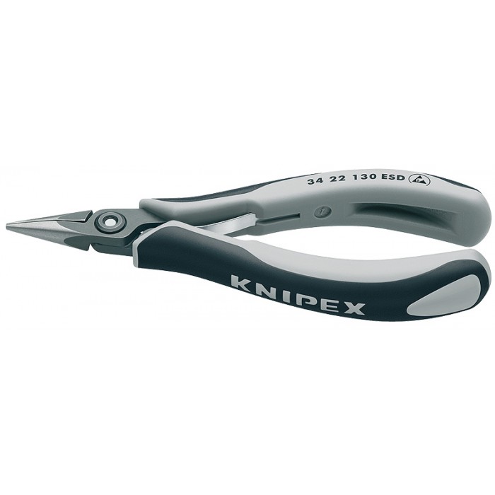 Плоскогубцы захватные прецизионные для электроники ESD, плоскокруглые губки, 130 мм, 2-комп антистатические ручки (KN-3422130ESD)