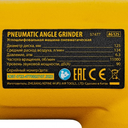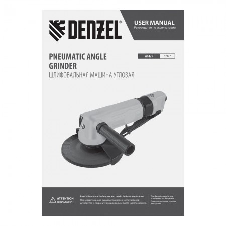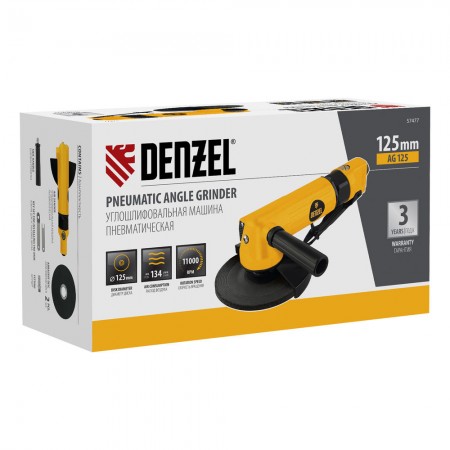 Пневматическая углошлифовальная машина AG125, 11000 об/мин, 125 мм, 186 л/мин Denzel (57477)