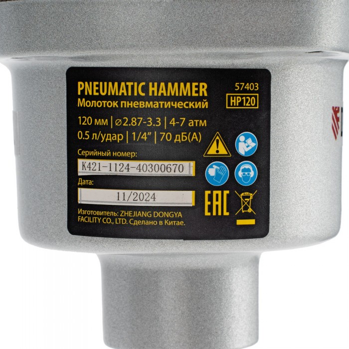 Пневматический молоток HP120 для одиночных гвоздей до 120 мм// Denzel (57403)