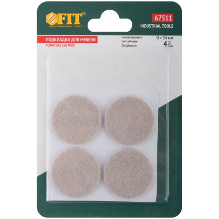 Подкладки для мебели самоклеющиеся круглые 34 мм, 4 шт., войлок (67511)