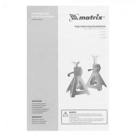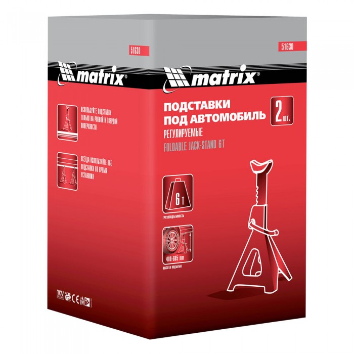 Подставки под машину регулируемые, 6 т, H подъема 400-605 мм, 2 шт Matrix (51630)
