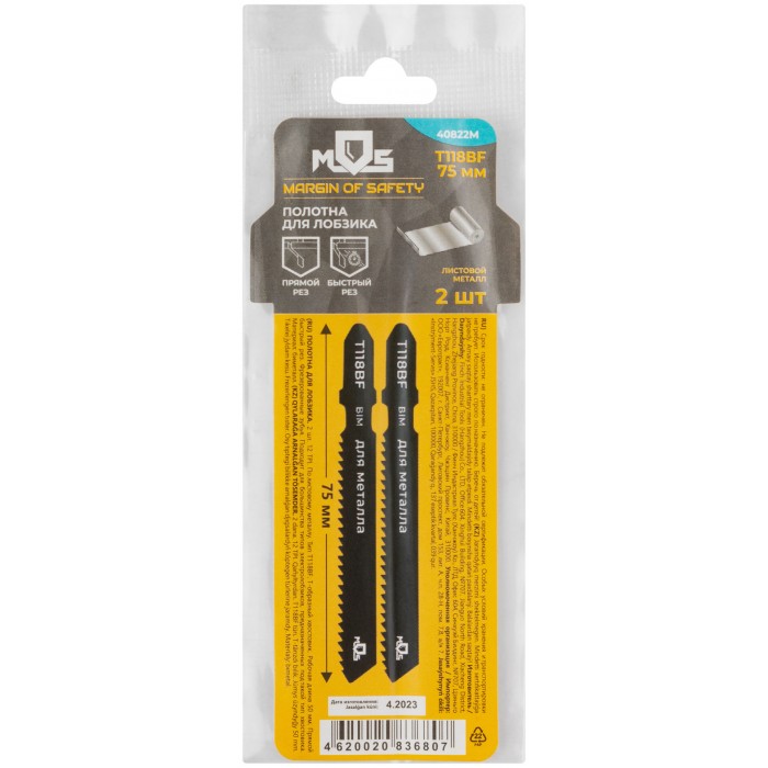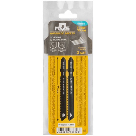 Полотна для эл. лобзика, T118BF, по металлу, Bimetal, 75 мм, 2 шт. (40822М)