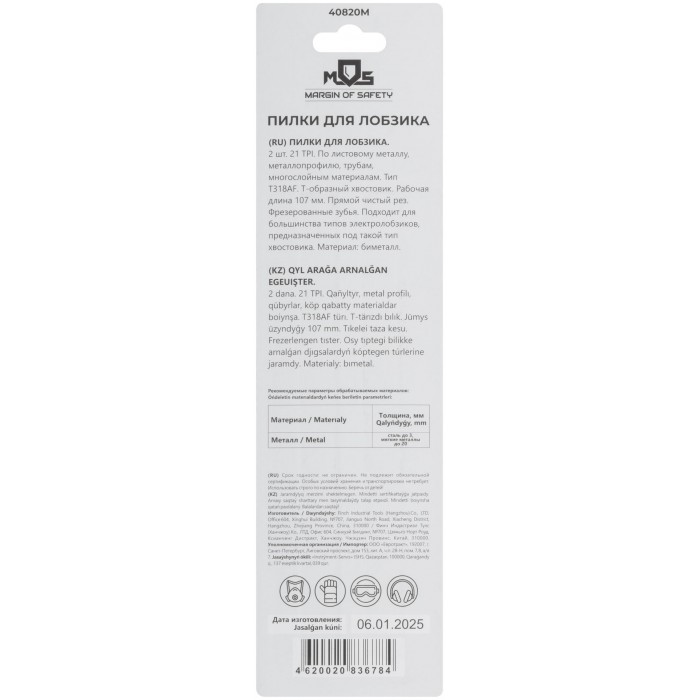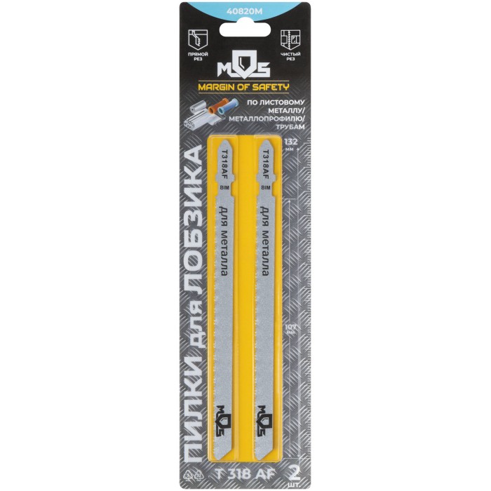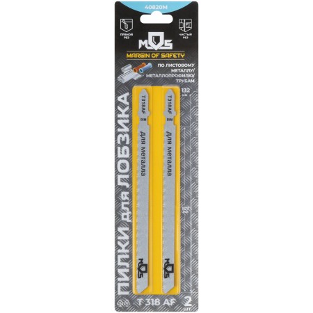 T318AF. Набор 2 шт. Зубья: фрезерованные. Прямой чистый рез. Для резки листового металла, металлопрофиля, труб, многослойных материалов. Т-образный хвостовик. Материал: биметалл. Упаковка: пакет с подвесом.