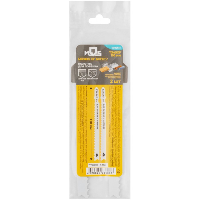 Полотна для эл. лобзика, T345XF, универсальные, Bimetal, 110 мм, 2 шт. (40826М)