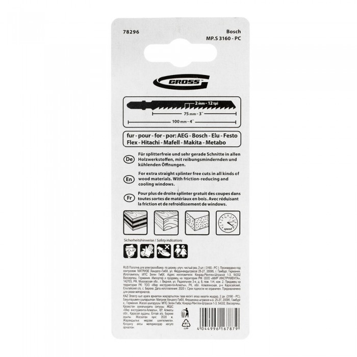 Полотна для электролобзика по дереву, улучшенный чистый рез, 2 шт. ( 3160 - PC ) Gross