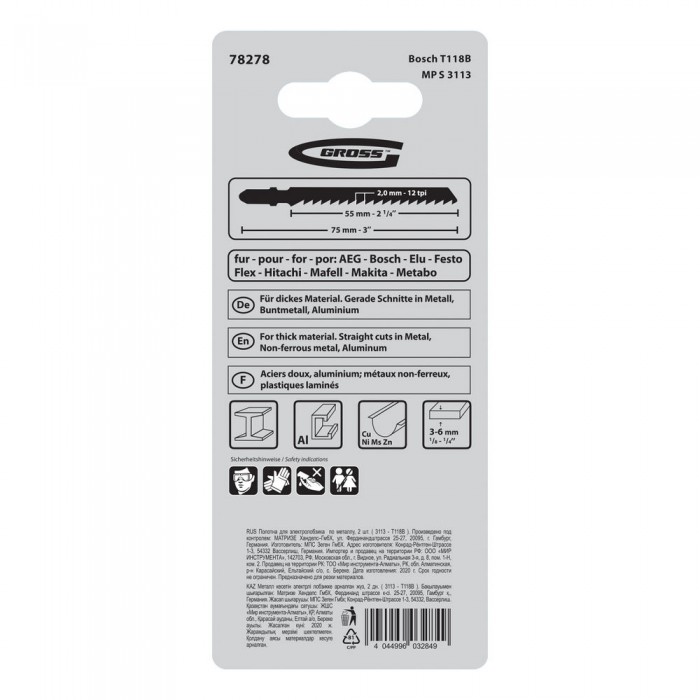 Полотна для электролобзика по металлу, 2 шт, ( 3113-T118B ) Gross