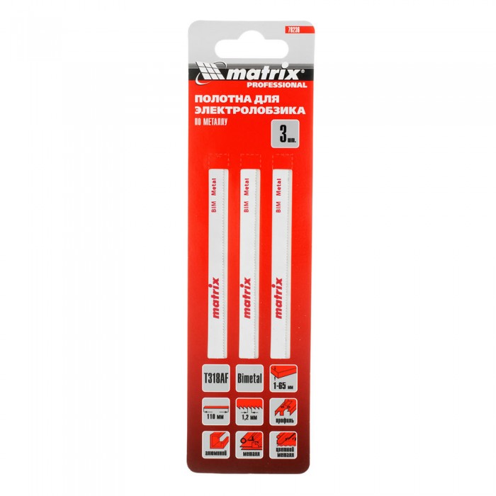 Полотна для электролобзика по металлу, 3 шт, T318AF, 110 x 1.2 мм, Bimetal Matrix