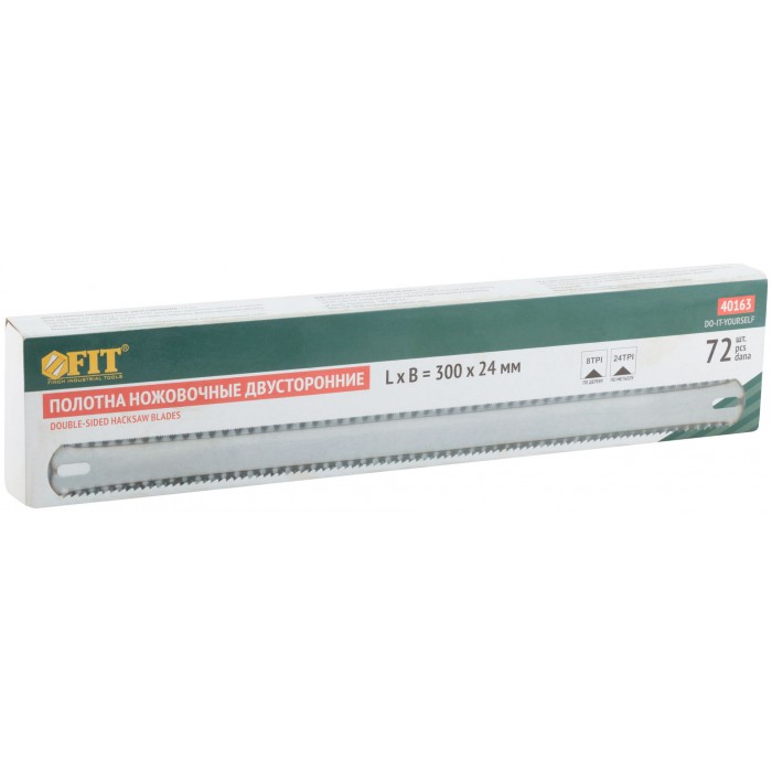 Для ножовок по металлу. Сторона 8TPI для резки древесины твердых и мягких пород, сторона 24TPI для резки металла и пластика. Высокочастотная закалка зубьев. Твердость HRC 56-57.