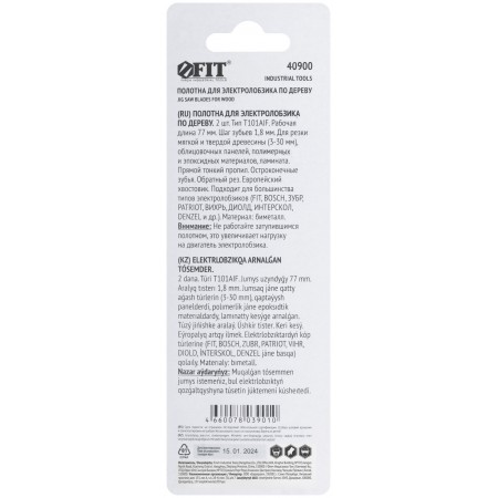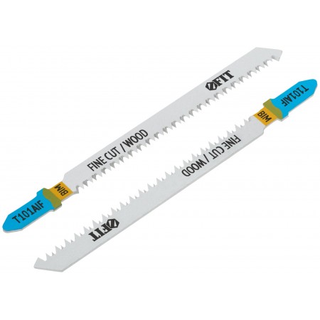 T101AIF. Остроконечные зубья, задний угол заточен. Прямой тонкий пропил. Для резки мягкой и твердой древесины, облицовочных панелей, полимерных и эпоксидных материалов, ламината. Толщина реза: 3-30 мм. Материал: биметалл. Упаковка: блистер.