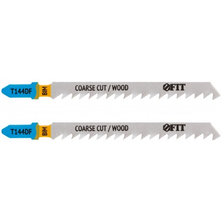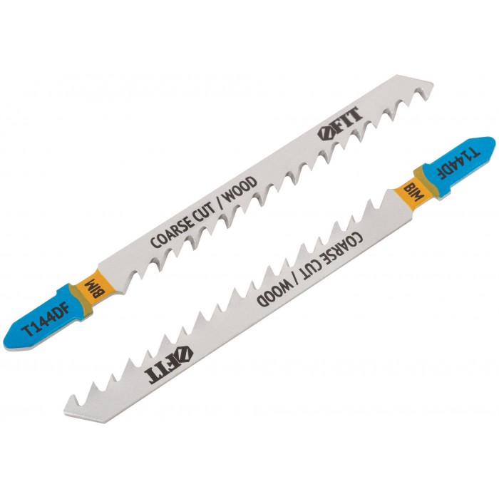 T144DF. Разведенные шлифованные зубья. Прямой грубый пропил. Для резки мягкой и твердой древесины, облицовочных панелей, полимерных материалов, ламината. Толщина реза: 5-50 мм. Материал: биметалл. Упаковка: блистер.