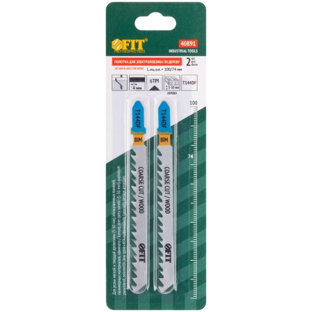 Полотна по дереву, Bimetal, разведенные, шлифованные зубья, 100/74/4 мм (Т144DF), 2 шт. (40891)