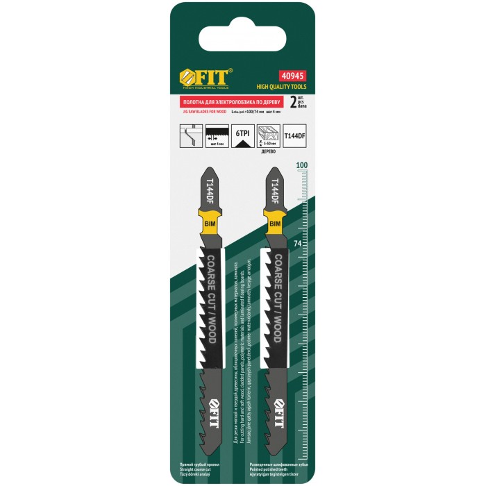 Полотна по дереву, Bimetal, разведенные, шлифованные зубья, 100/74/4 мм (Т144DF), 2 шт. (40945)