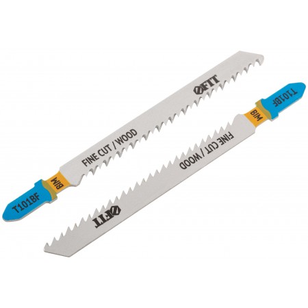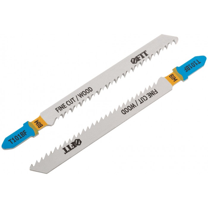 T101BF. Шлифованные под свободным углом зубья, задний угол заточен. Прямой тонкий пропил. Для резки мягкой и твердой древесины, облицовочных панелей, полимерных и эпоксидных материалов, ламината. Толщина реза: 3-30 мм. Материал: биметалл. Упаковка: блистер.