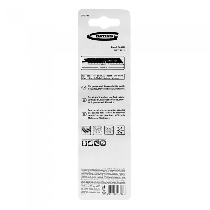 Полотна по дереву для сабельной пилы 4011 - S644D, 130 x 4.2 мм, фигурный рез, 2 шт. Gross
