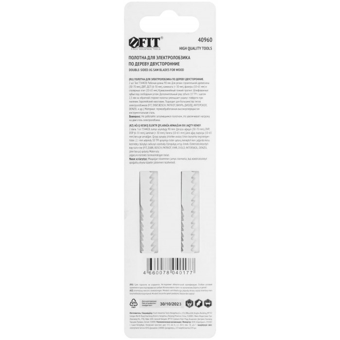 T344CB. Зубья: заточены, задний угол заточен. Пропил: криволинейный, тонкий. Дополнительный ряд зубьев с шагом 2,5 мм на обратной стороне полотна уменьшает радиус поворота при пилении. Для резки строительной древесины, ДВП, ДСП, ламината, фанеры, столярных плит. Толщина реза: 30-70 мм. Материал: высокоуглеродистая инструментальная сталь. Упаковка: картонный конверт.